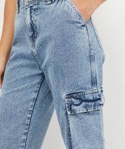Soft Comfortable Women Washed Cargo Jeans for Long Wear Comfort