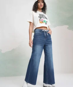 Modern Women Blue Wide Leg Stretch Jeans with Soft and Breathable Fabric