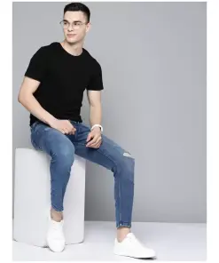 Men Tapered Fit Mid Rise Dark Blue Jeans