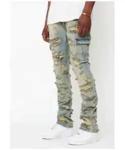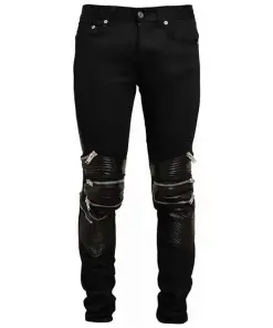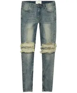 Men’s Washed Moto Jeans with Ripped Knee Detail