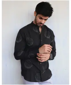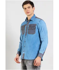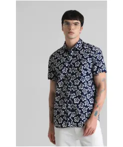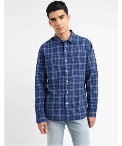 Blue and Black Regular Fit Men’s Cotton Casual Shirt