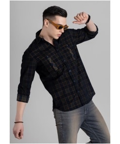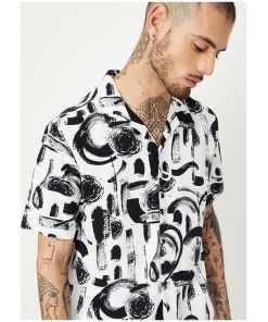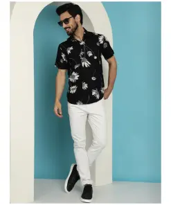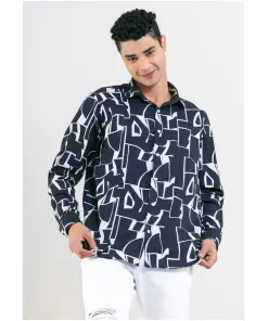 Black and White Regular Fit Printed Men’s Cotton Shirt