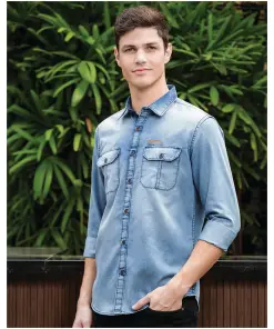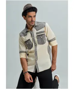 Beige Regular Fit Men’s Denim Cotton Shirt