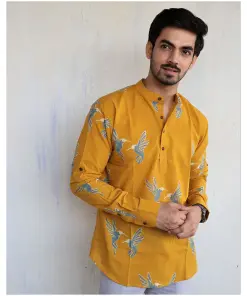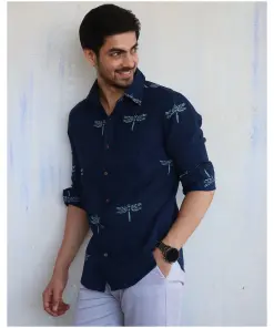 Navy Blue Dragonfly Block-printed Men’s Shirt