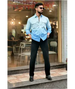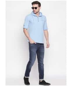 Light Blue Short Cross Kurta Shirt – Casual Cotton Comfort