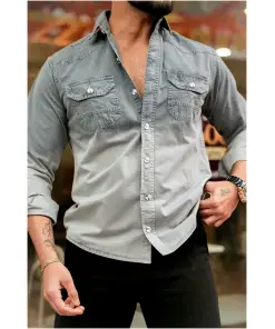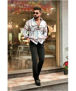 Grey- Off White Double Shade Cotton Rfd Shirt