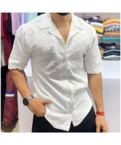 Men Regular Fit Self Design Lapel Collar Casual Shirt