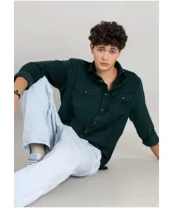 Dark Green Regular Fit Corduroy Men’s Shirt