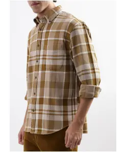 Light Green Regular Fit Corduroy Men’s Check Shirt