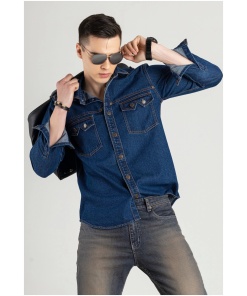 Blue Regular Fit Men’s Denim Casual Shirt