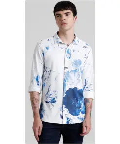 White Floral Print Full Sleeves Shirt
