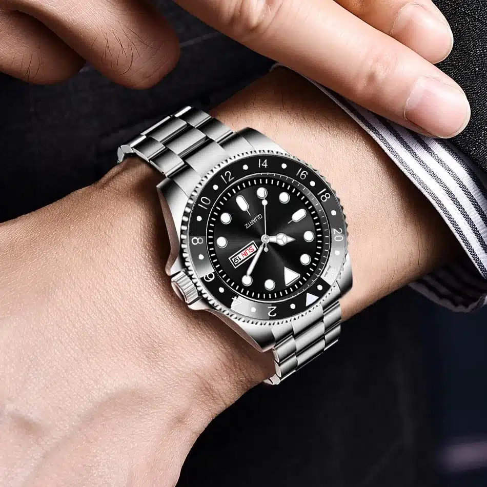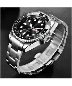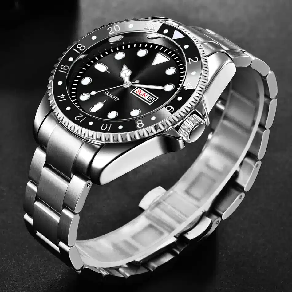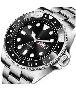 Men’s Stainless Steel Chain Day-Date Analog Wristwatch – a seamless blend of style and functionality that makes a bold statement on your wrist. This timepiece is not just a watch; it’s an embodiment of modern elegance, designed for those who appreciate both form and function.