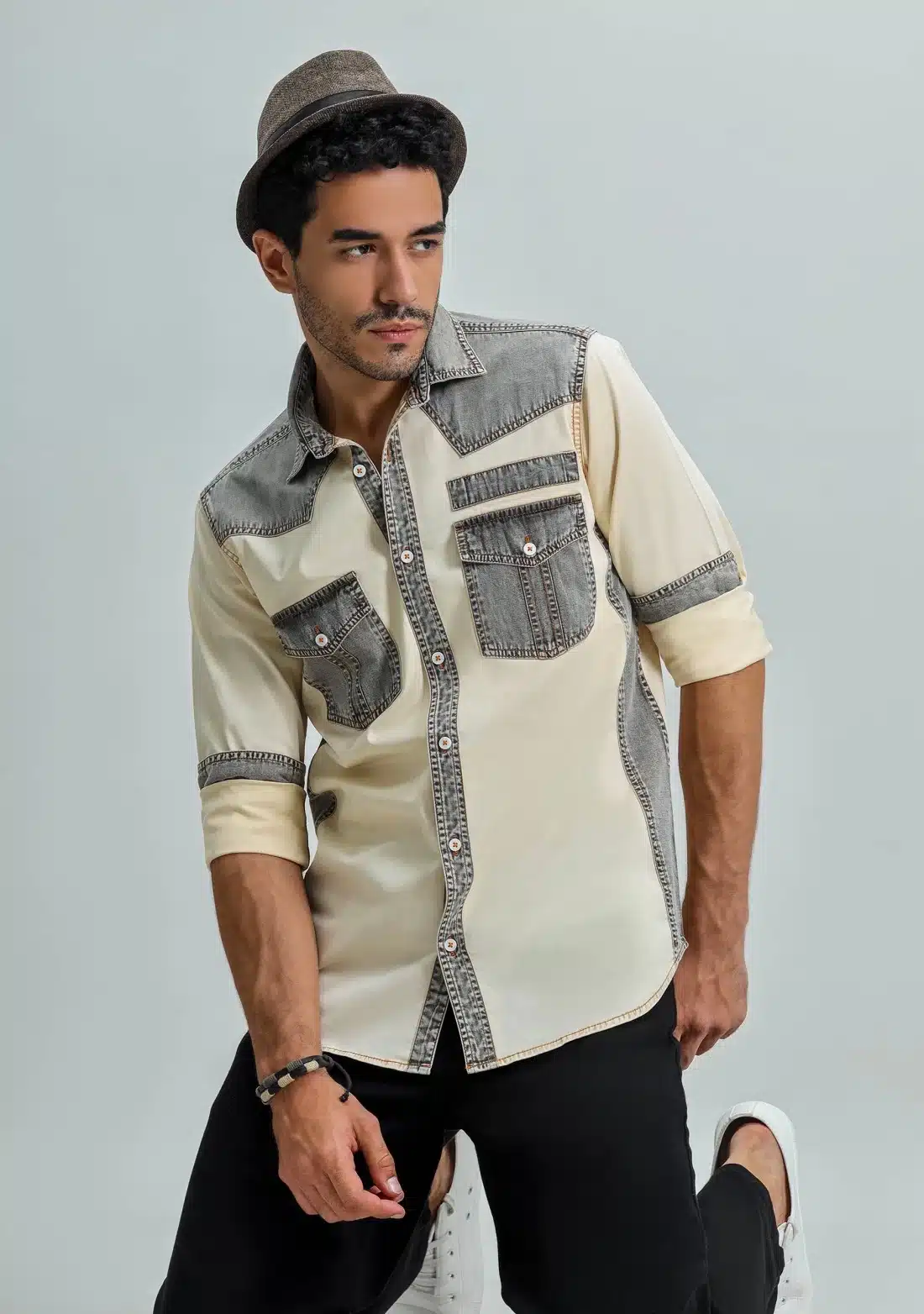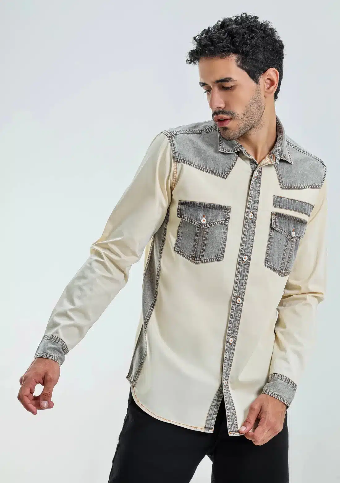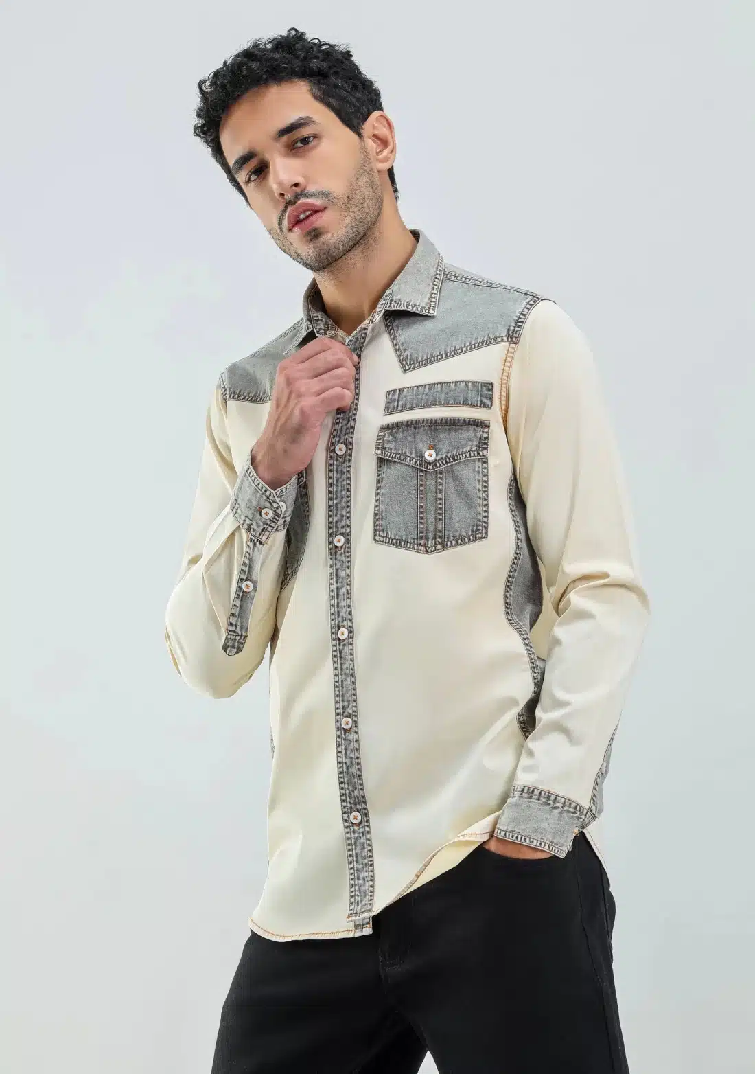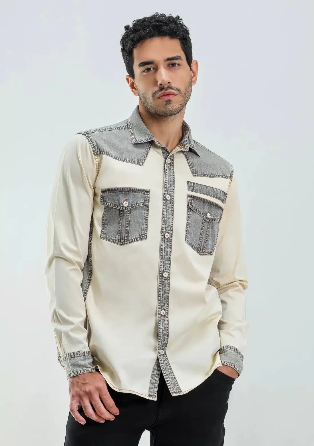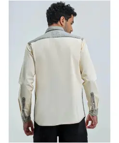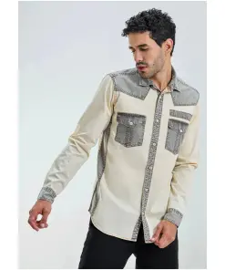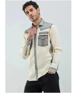 Beige Regular Fit Men’s Denim Cotton Shirt