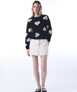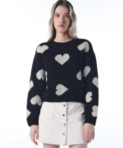 Black Heart Motif Knit Pullover