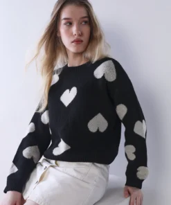 Black Heart Motif Knit Pullover