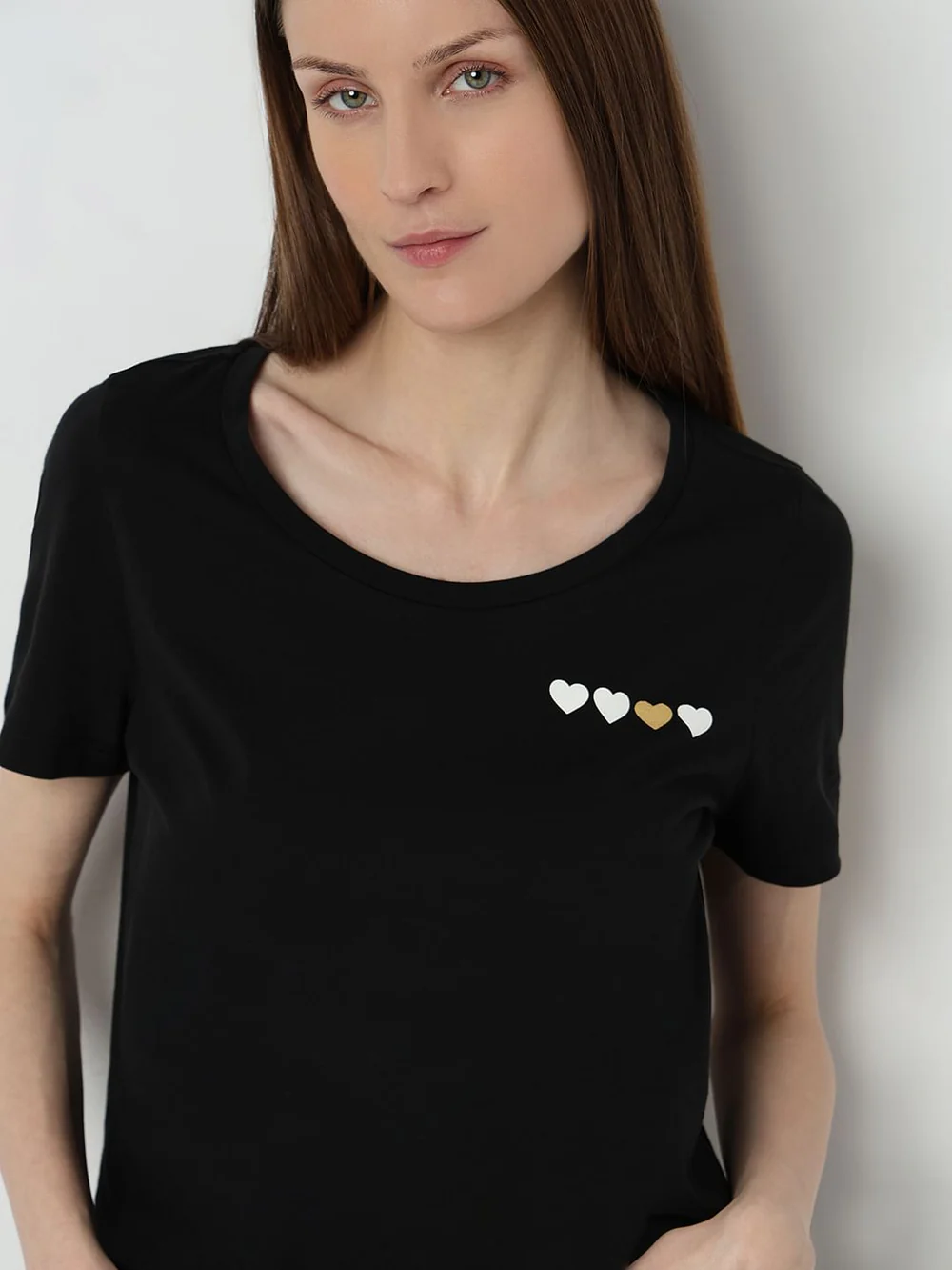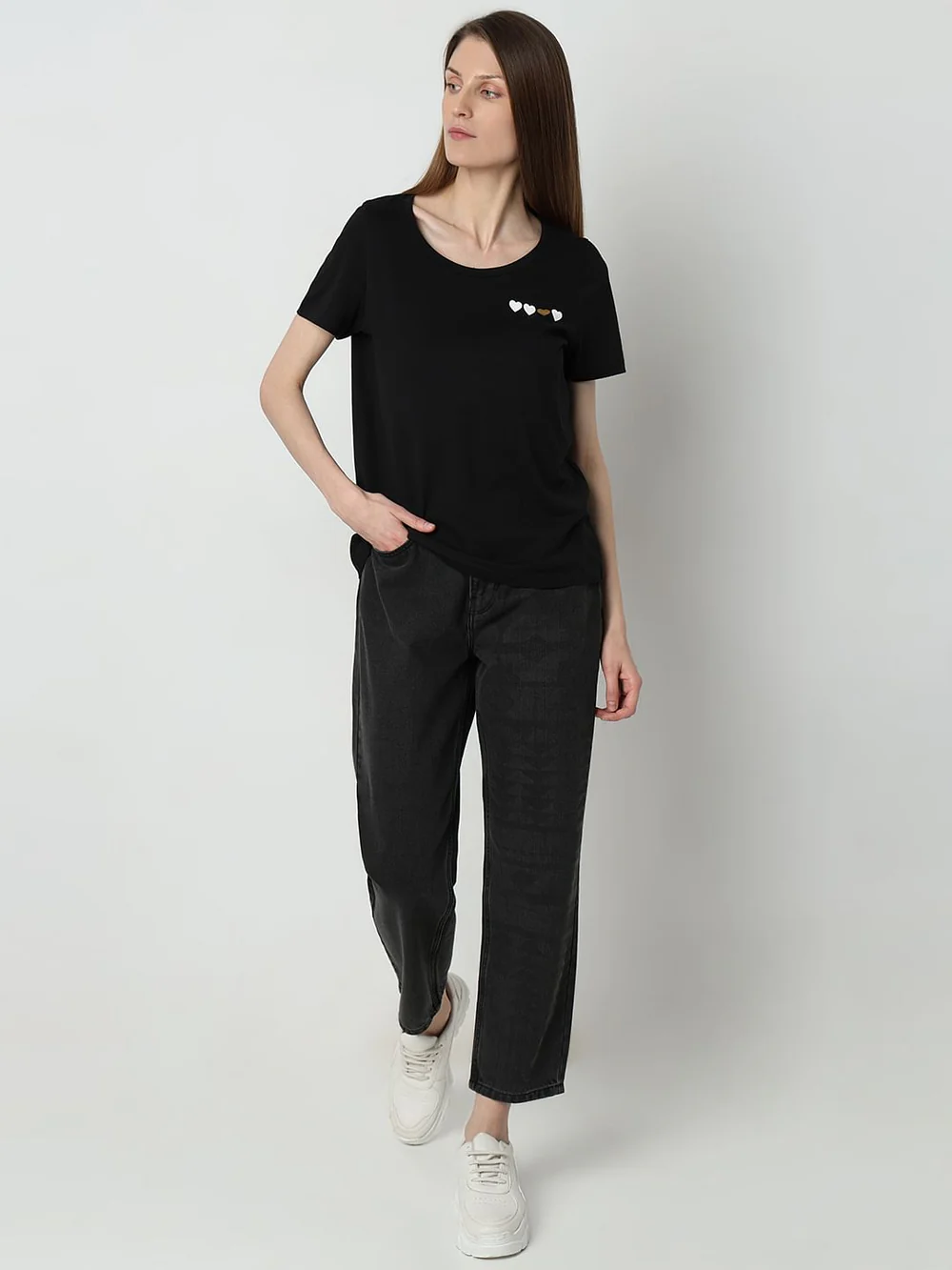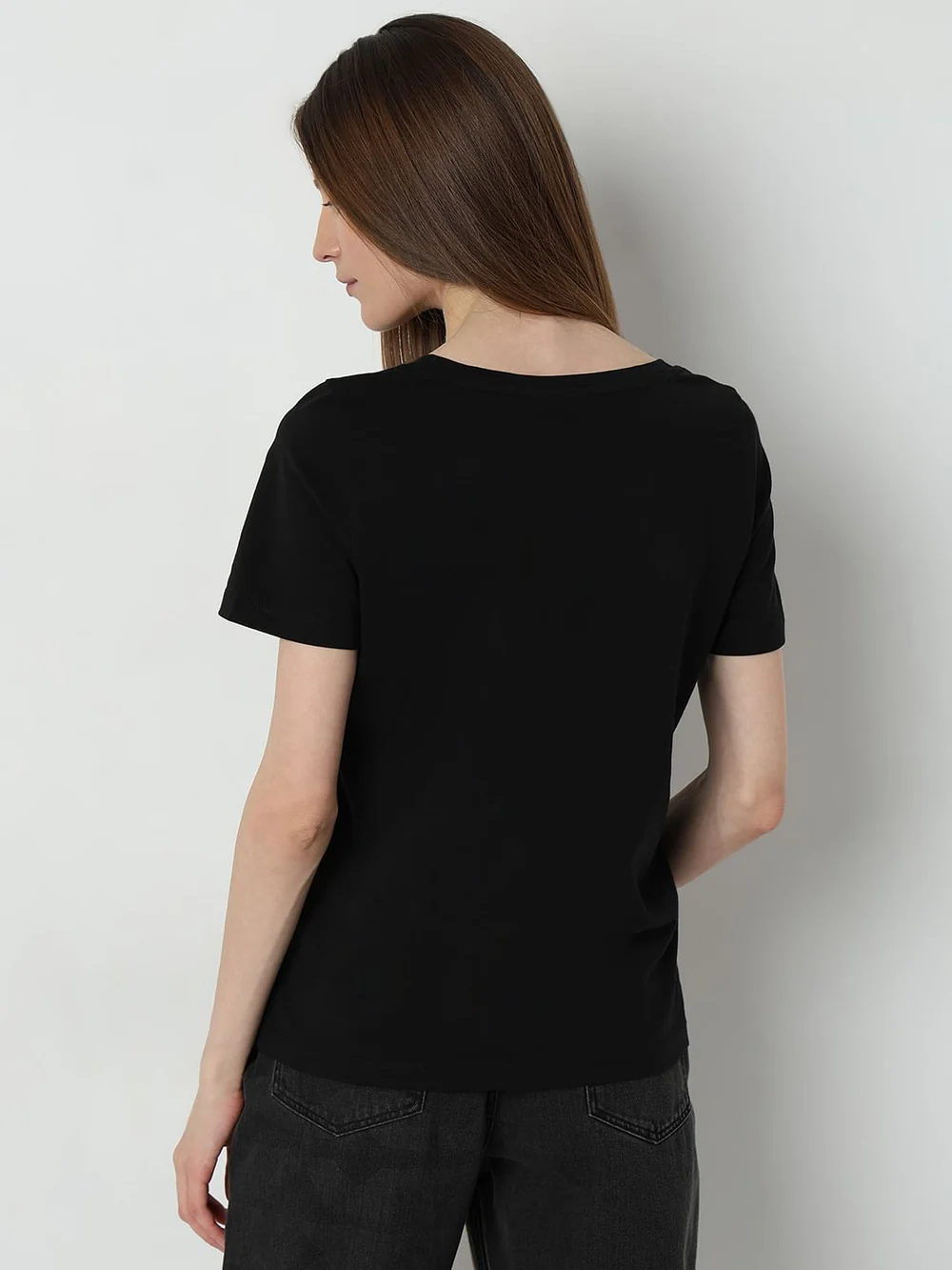 Black Women’s Organic Cotton Round Neck T-Shirt