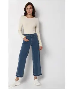 Pair them with a crisp button-down shirt for a polished office ensemble, or dress them down with a cozy sweater for weekend outings. However you choose to style them, these Blue High Rise Washed Straight Fit Jeans are sure to become a staple in your wardrobe, offering comfort and sophistication in equal measure.