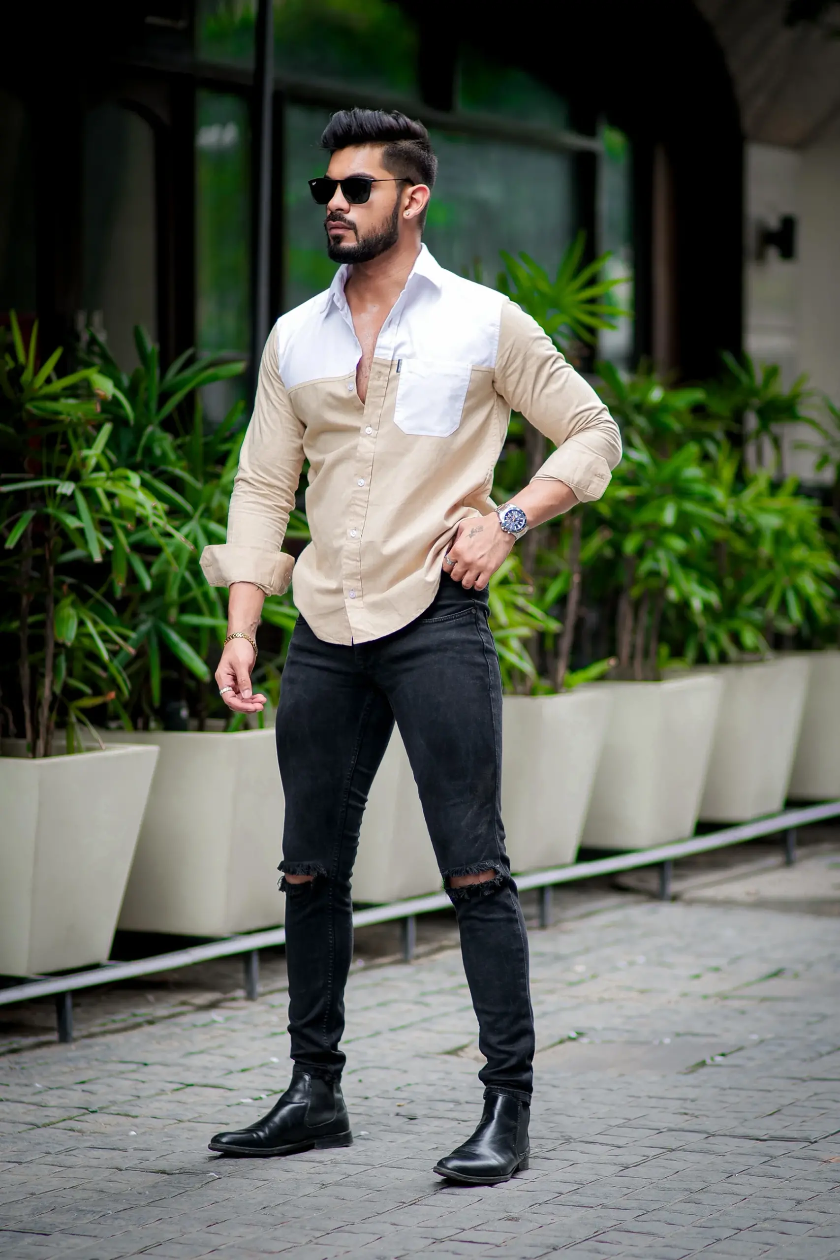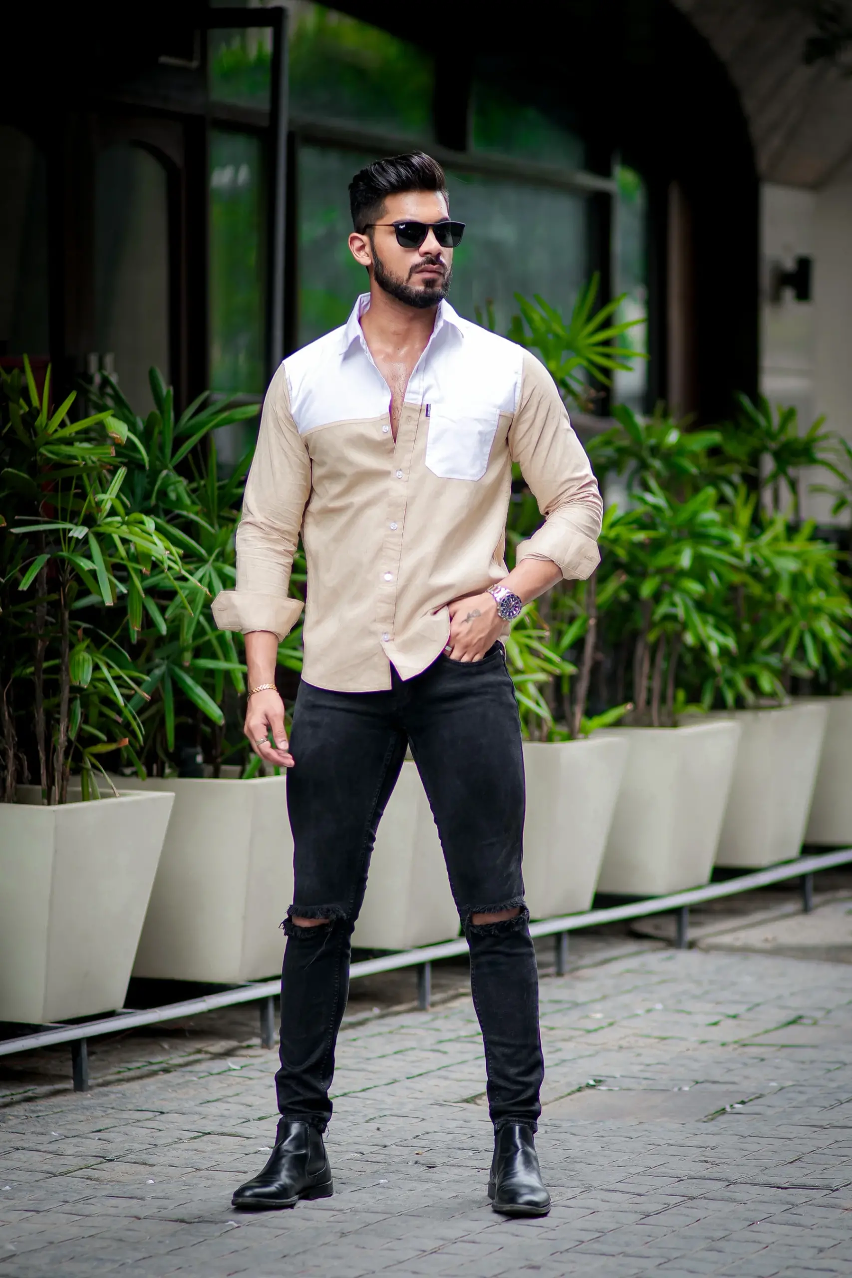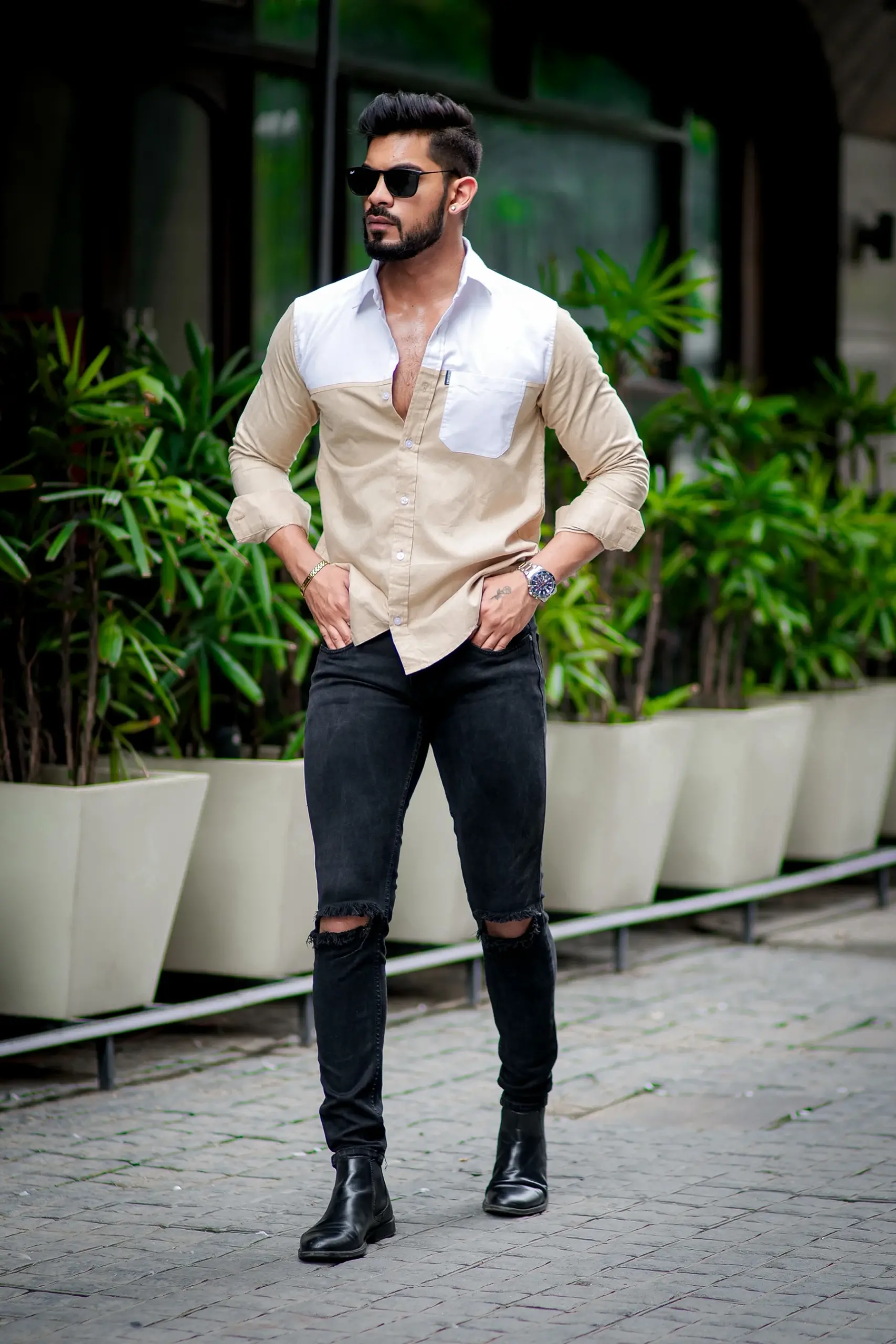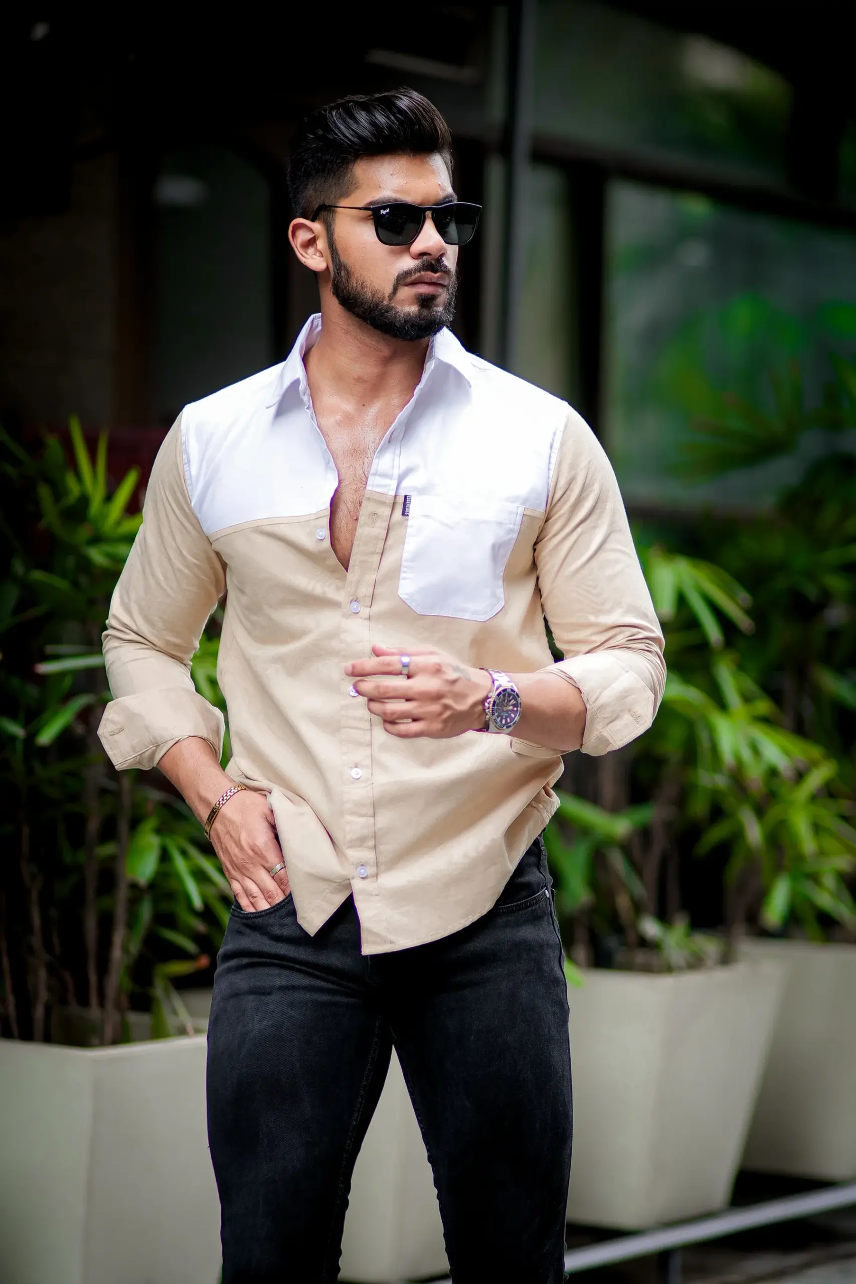 Embrace sophistication with the Camel White Designer Cotton Full Sleeve Shirt – because true style knows no bounds.