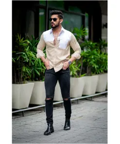 Camel White Designer Cotton Full Sleeve Shirt – a fusion of sophistication and understated elegance that defines contemporary style. Crafted from premium cotton, this shirt offers luxurious comfort and breathability, making it a versatile choice for any occasion.