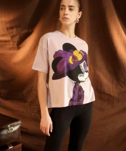 Overall, the casual Disney Minnie Mouse T-shirt is a versatile, comfortable, and fashionable piece. It is an ideal choice for daily wear, allowing women to showcase a cheerful and trendy style while enjoying maximum comfort and ease throughout the day.