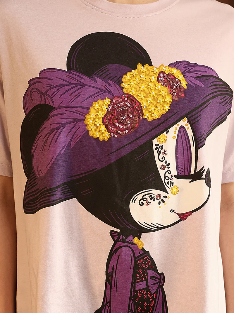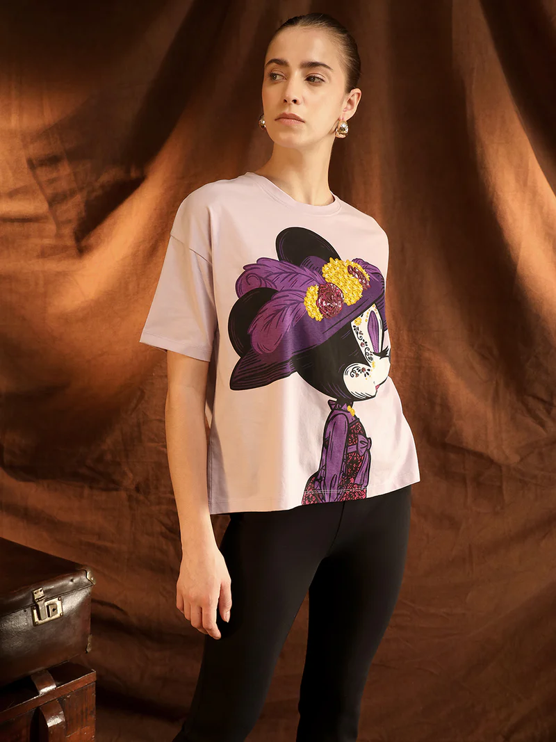 This casual Disney Minnie Mouse T-shirt is a fun and stylish choice for daily wear, designed for women who love playful yet comfortable fashion. Featuring an adorable Minnie Mouse graphic, it adds a cheerful and youthful touch to your everyday outfits. The classic round neck and regular fit make it a versatile piece that is easy to wear, while the soft fabric ensures comfort throughout the day.
