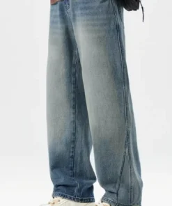 The understated blue wash gives the denim a clean, versatile appearance, allowing these jeans to easily complement t-shirts, hoodies, casual shirts, and sneakers. Their “take it easy” design philosophy is reflected in the roomy fit and effortless style, making them an ideal choice for a modern, relaxed wardrobe.