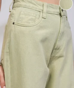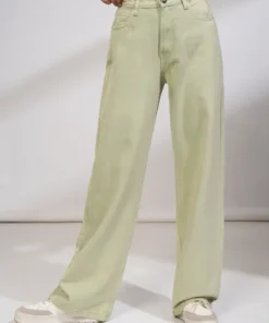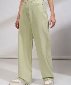 The soft green hue gives these jeans a fresh, contemporary appeal that stands out from traditional denim colors, making them a versatile choice for creating stylish, eye-catching outfits. The straight fit design allows easy pairing with casual tops, T-shirts, blouses, or lightweight jackets, perfect for achieving a relaxed yet polished look.