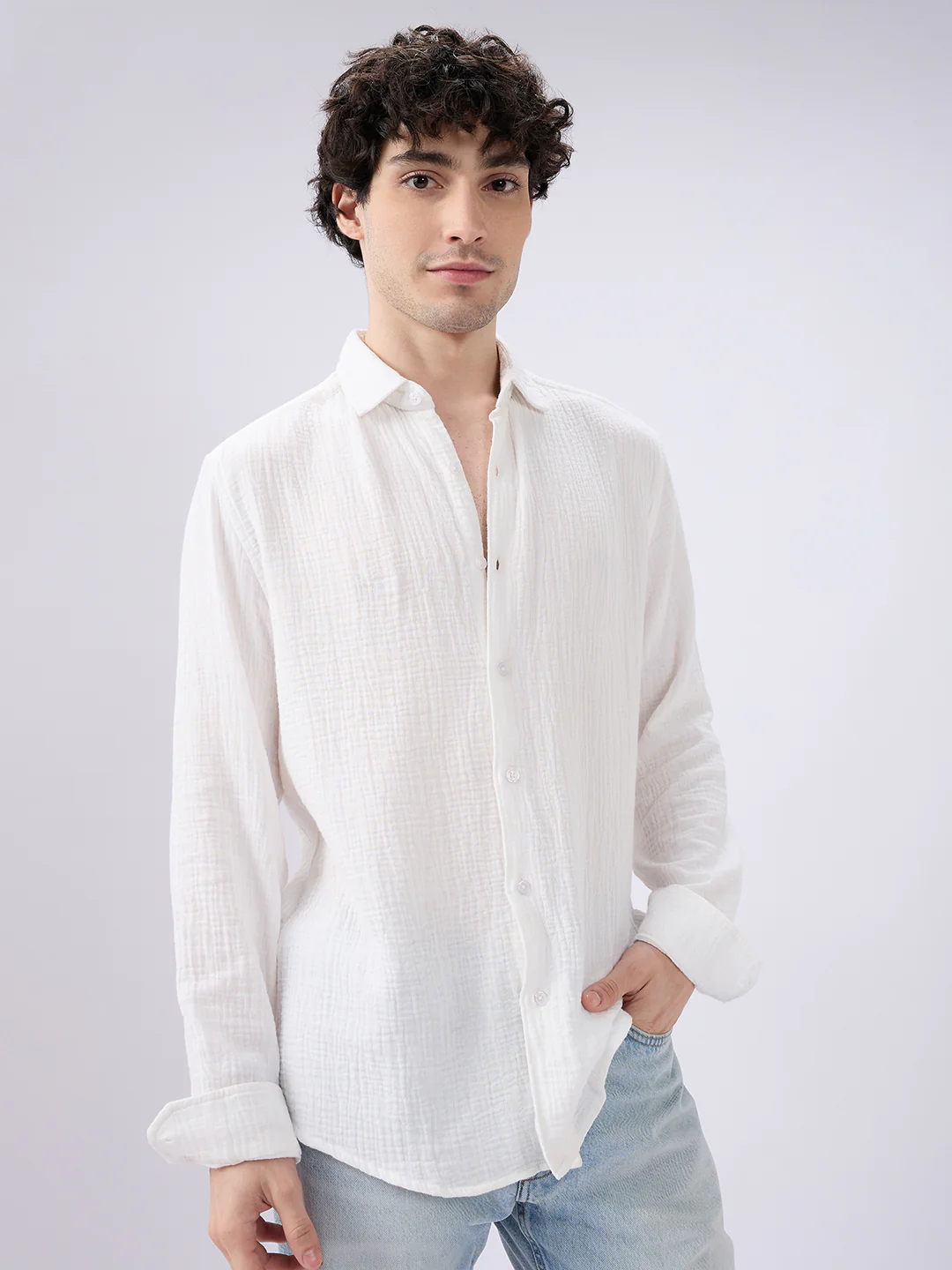 Made from high-quality double cloth fabric, this shirt offers a soft, smooth texture with a premium finish. The fabric ensures durability and a structured look, while remaining breathable for all-day comfort. Its tailored fit provides a sharp silhouette that complements a variety of body types, making it an essential piece for any formal wardrobe.