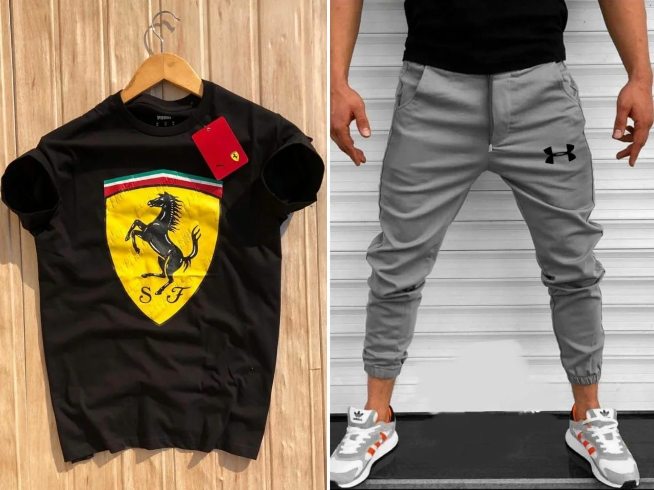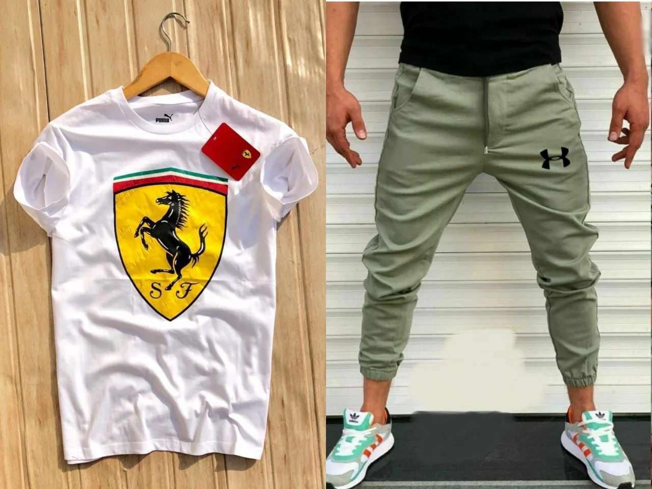 T-shirt and Jogger Combo! This dynamic pairing combines the laid-back appeal of a classic T-shirt with the sporty-chic vibe of jogger pants for a look that’s effortlessly cool and endlessly versatile.