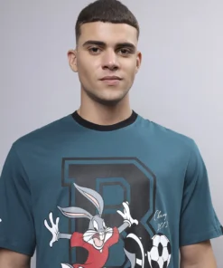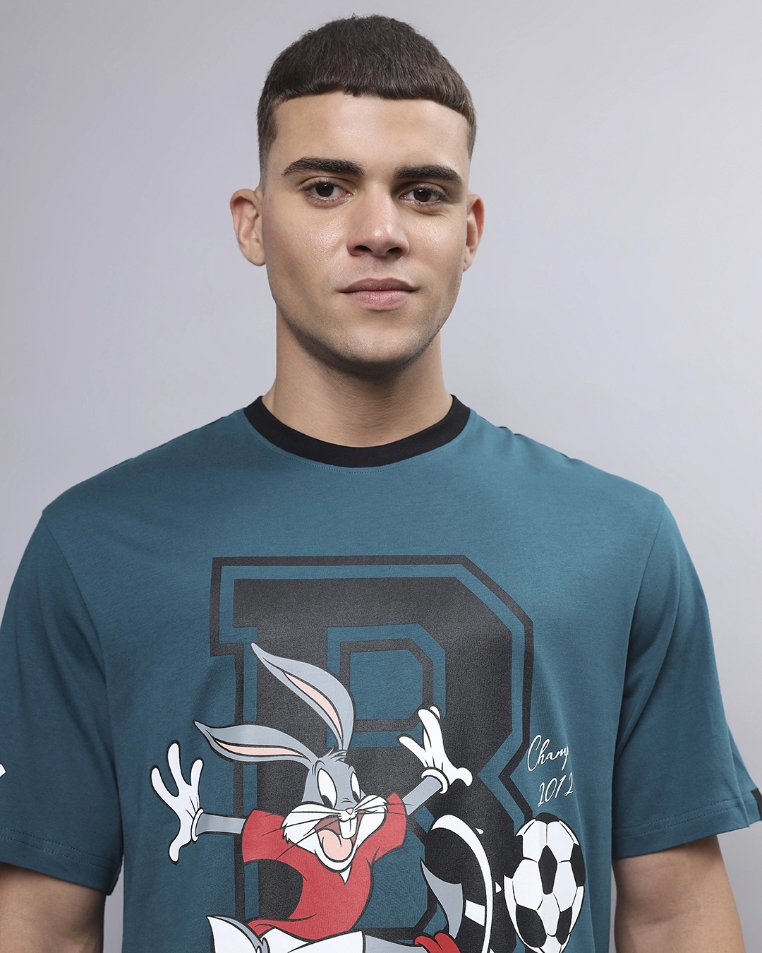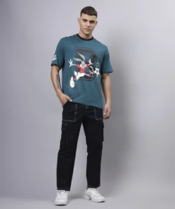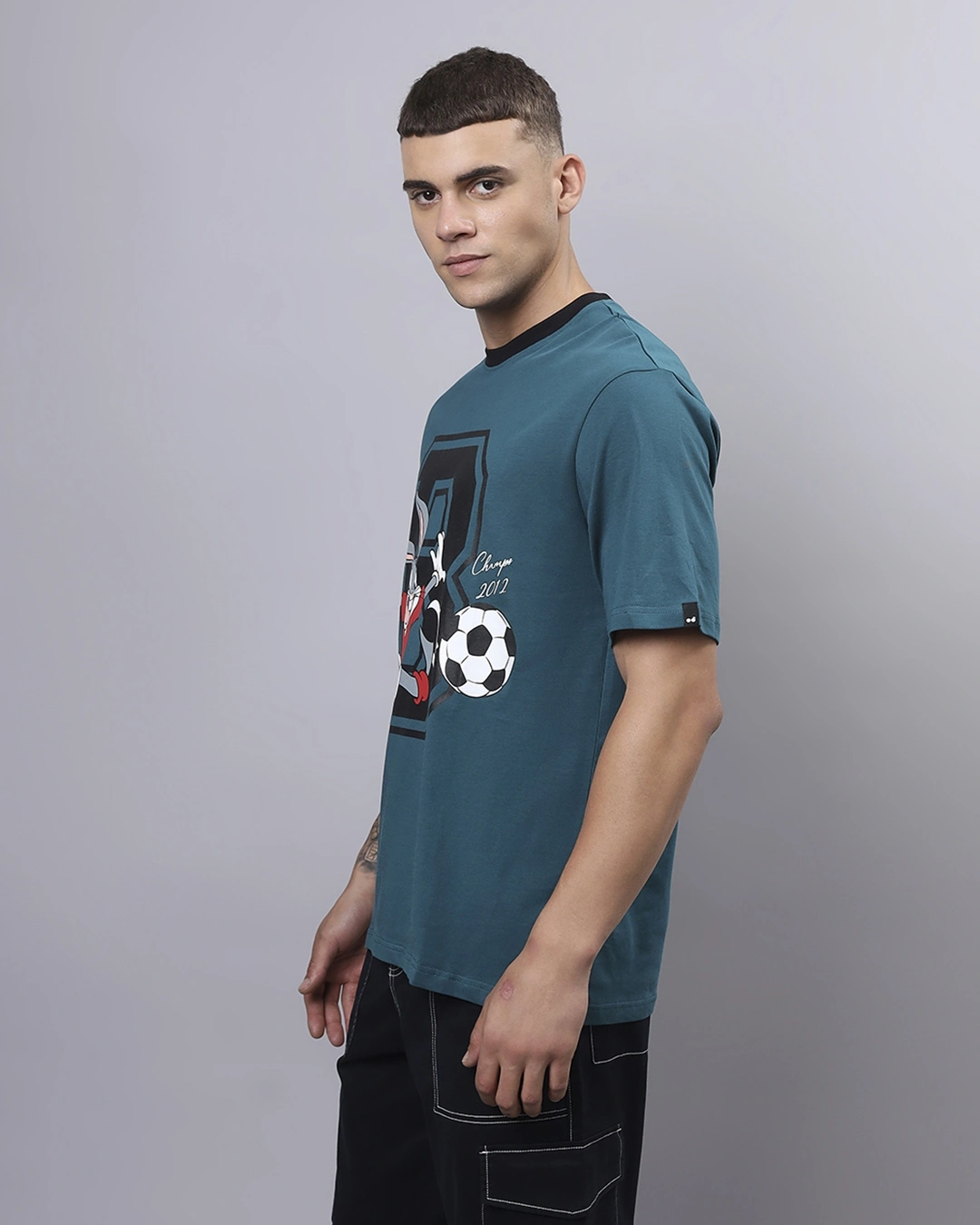 Comfortable Green Oversized Playing Bugs Print T-Shirt