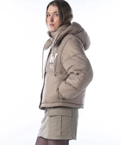 The jacket features a high-neck collar and full-length front zipper, providing extra protection against cold winds while creating a sleek, polished silhouette. Ribbed cuffs and an adjustable hem help lock in warmth, while the quilted puffer design enhances insulation and adds modern visual appeal. The combination of teddy fabric and puffer panels not only ensures maximum warmth but also gives the jacket a trendy, contemporary look that’s perfect for fashion-forward women.