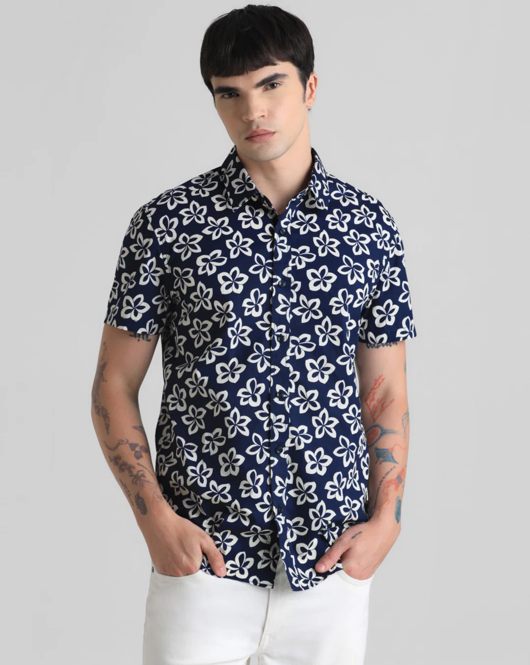 Elevate your wardrobe with the Dark Blue Floral Print Shirt – a statement piece that celebrates the beauty of nature and the timeless appeal of floral prints. Make a lasting impression with this elegant and captivating shirt that sets you apart from the crowd.