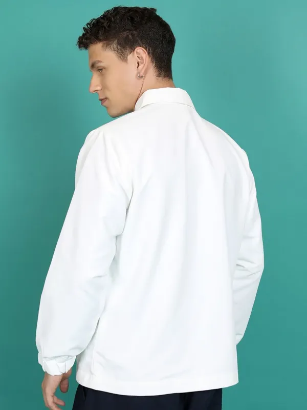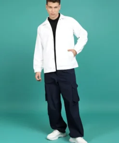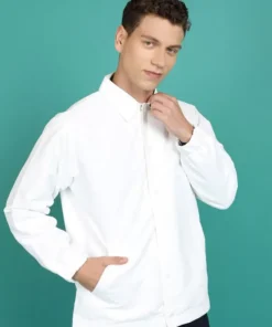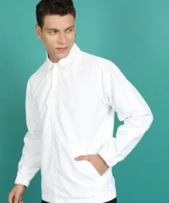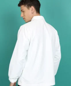 Fashionable Men White Bomber Jacket with Clean Silhouette and Professional Look