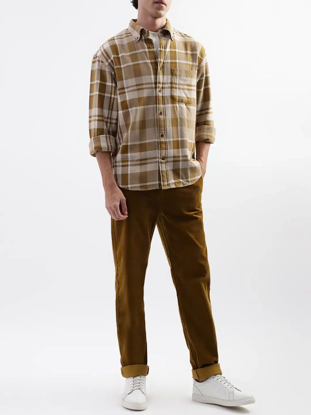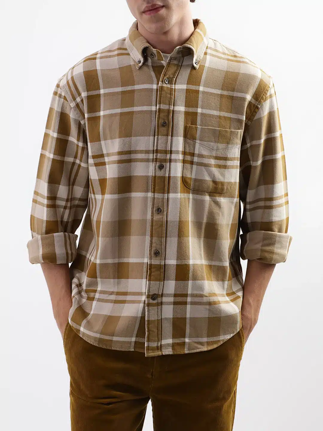 Gant Men’s Brown Checked Collar Shirt, where classic sophistication meets contemporary charm. Crafted to perfection, this shirt showcases a rich brown hue accentuated by a timeless checked pattern, exuding refinement and versatility.