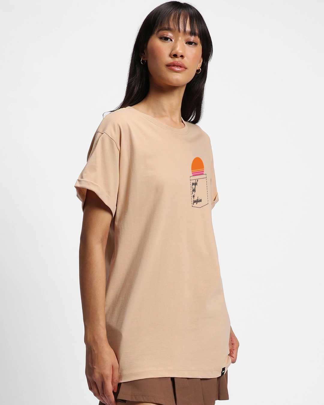 Pair the Ginger Root Brown Pocket Shine Graphic Printed Boyfriend T-Shirt with jeans, shorts, leggings, or joggers for a chic, everyday ensemble. With its combination of comfort, contemporary design, and casual charm, this T-shirt is a must-have piece for creating versatile, on-trend looks with ease.
