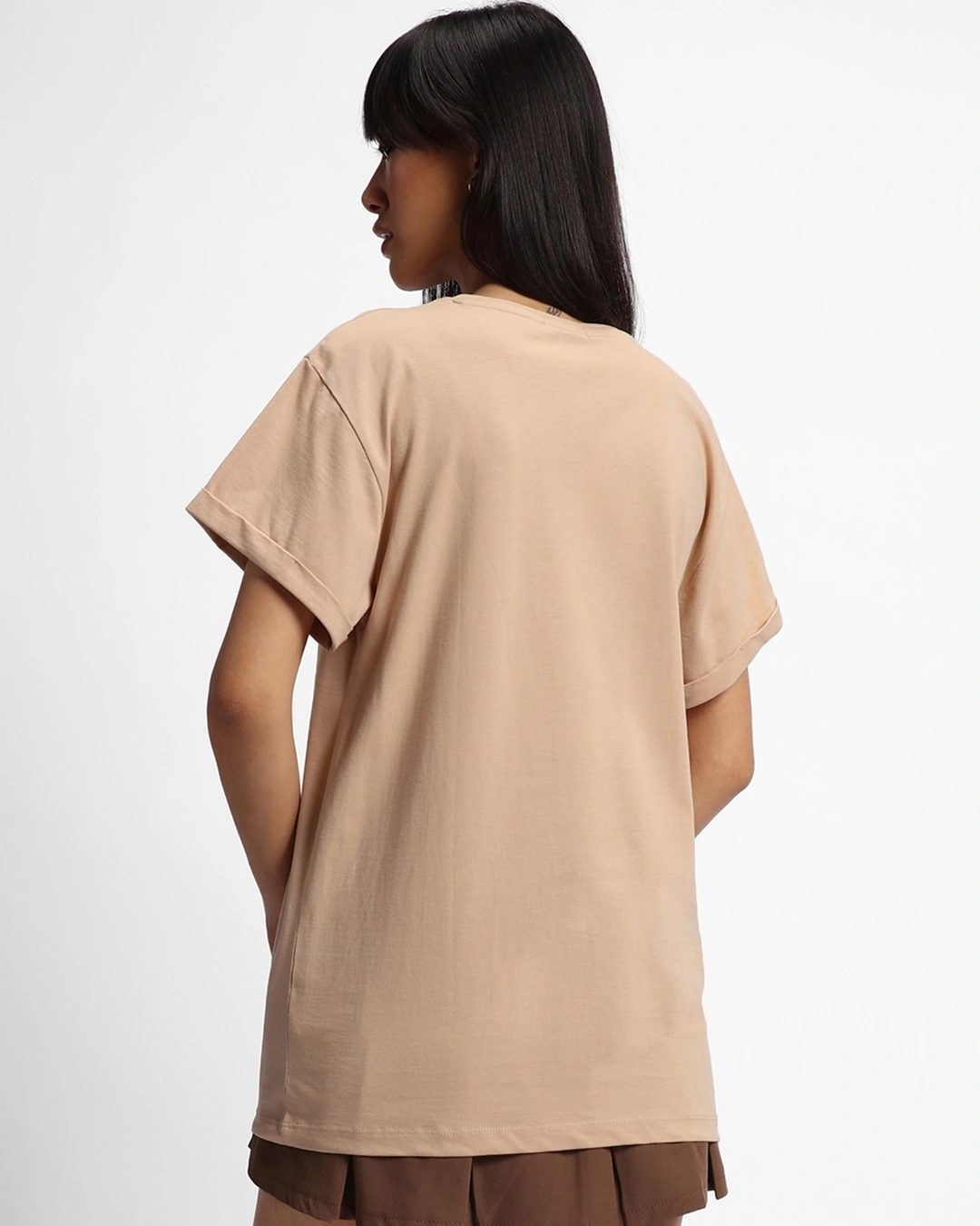 Featuring a classic round neckline, this T-shirt ensures a flattering fit for all body types. Its oversized, casual cut allows freedom of movement and adds a relaxed, effortlessly stylish vibe, making it ideal for casual outings, home wear, or weekend get-togethers.