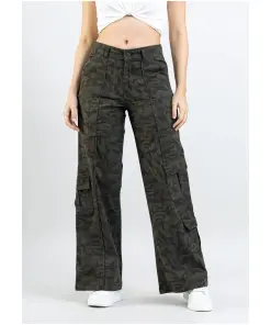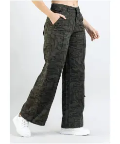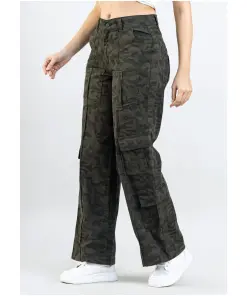 Green Camouflage Wide Leg Women’s Cargo Trousers