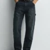 Functional design features, including a classic five-pocket layout, secure zip-fly closure, and sturdy belt loops, add practicality while complementing the casual aesthetic. These details make everyday wear convenient and stylish.
