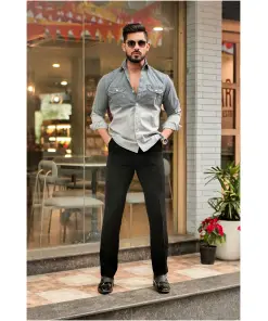 Grey- Off White Double Shade Cotton Rfd Shirt