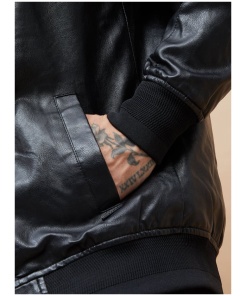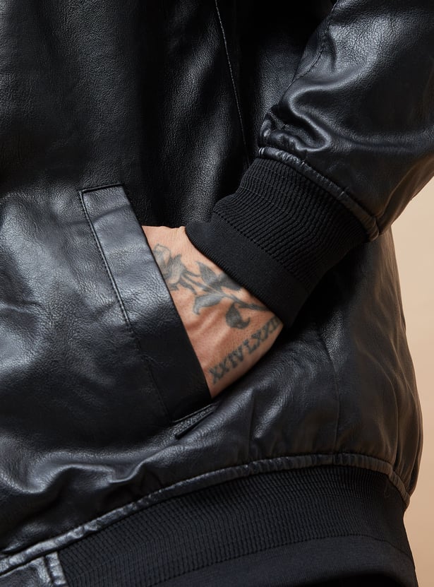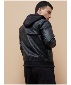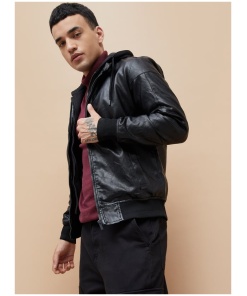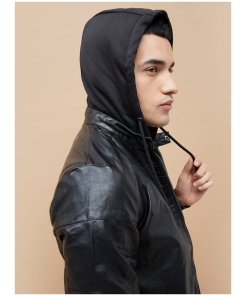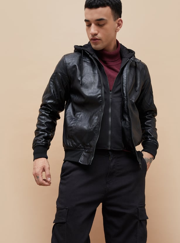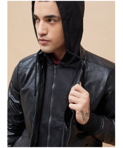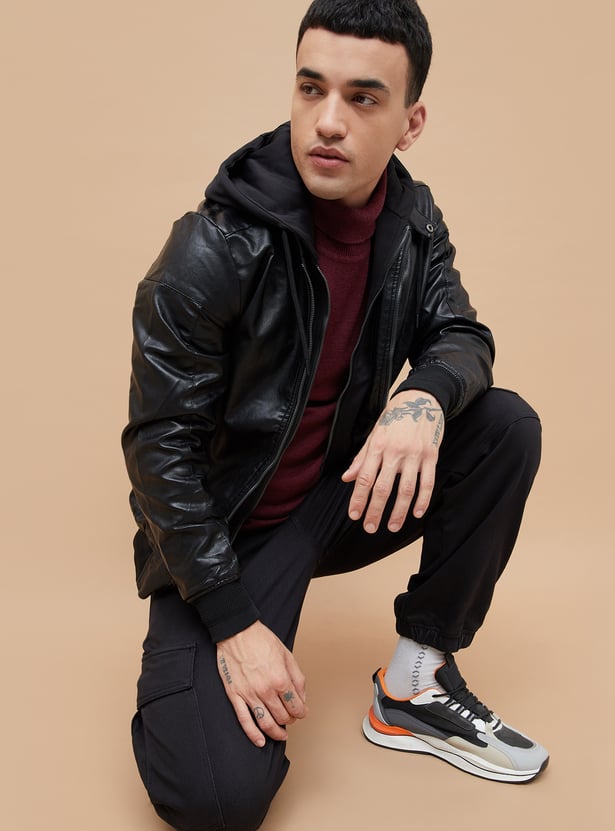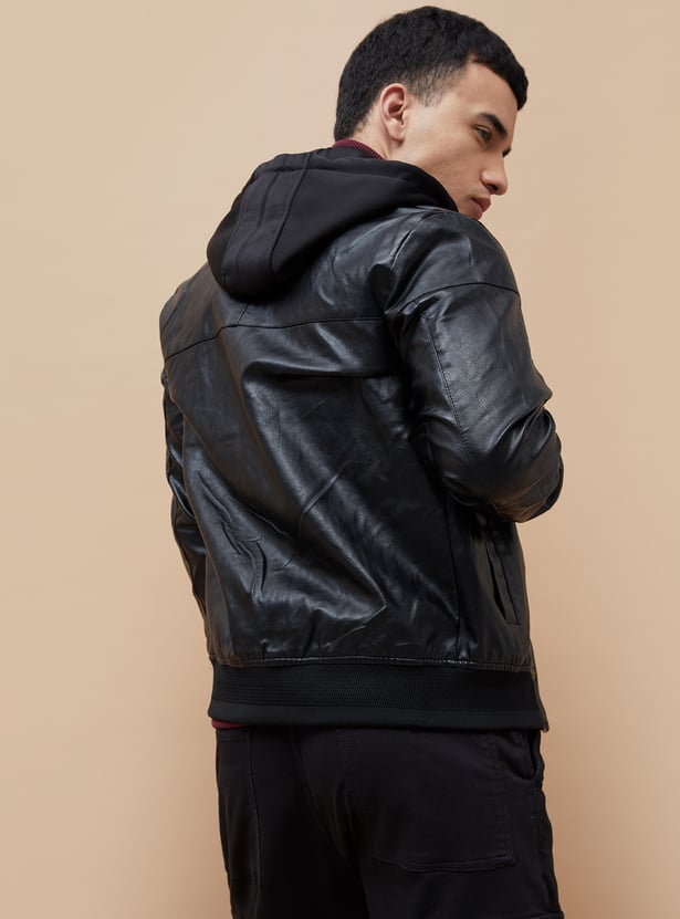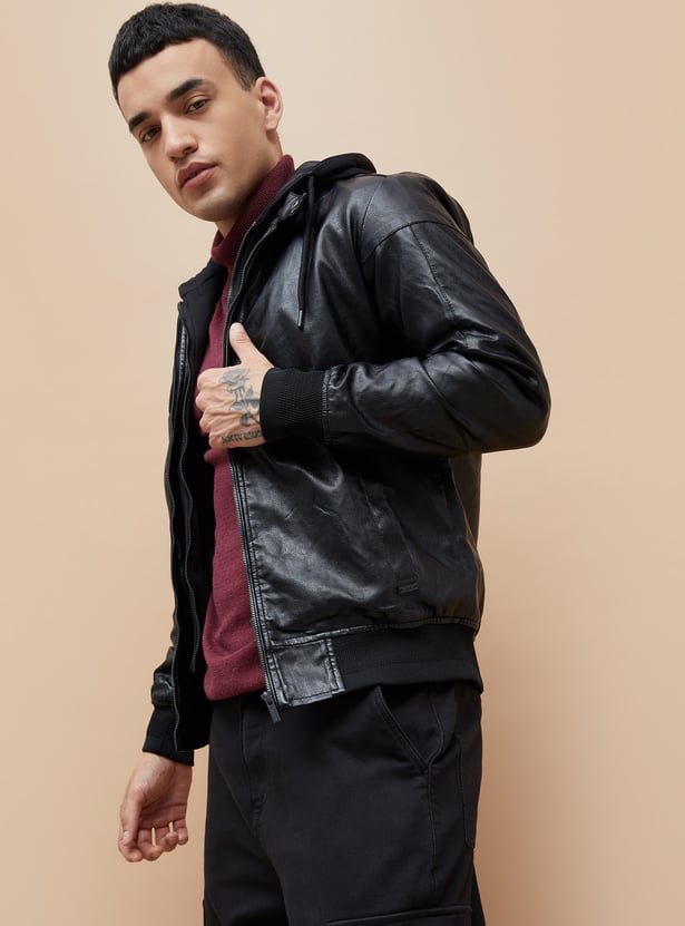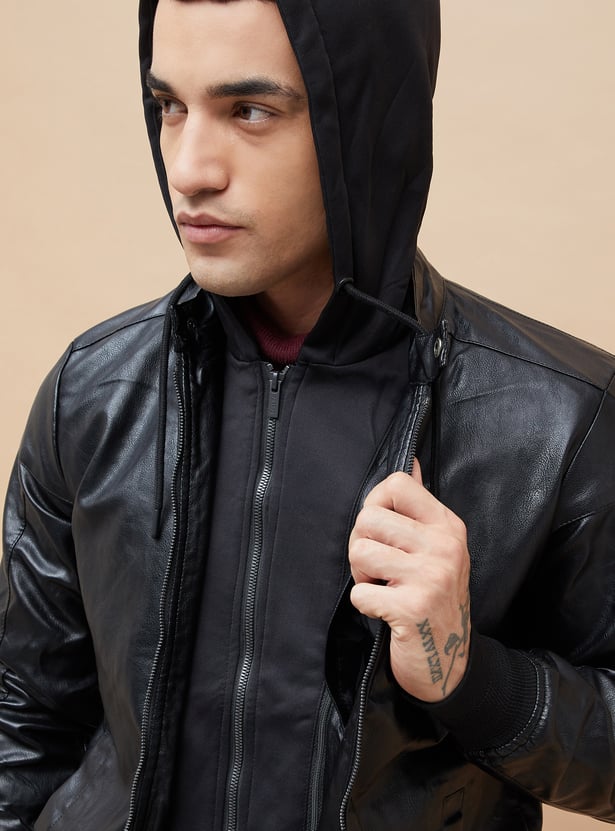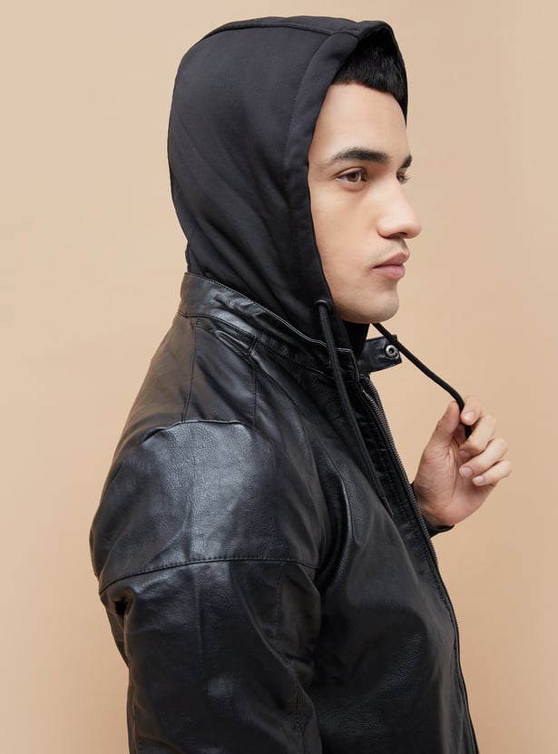 Hooded Textured Biker Jacket for Men Classic Moto Design