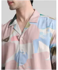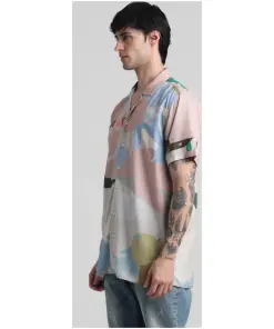 The light blue hue serves as the perfect backdrop for the abstract print, adding a touch of freshness and vibrancy to your ensemble. Whether you’re attending a casual gathering or a more formal event, this shirt ensures you stand out with effortless elegance.
