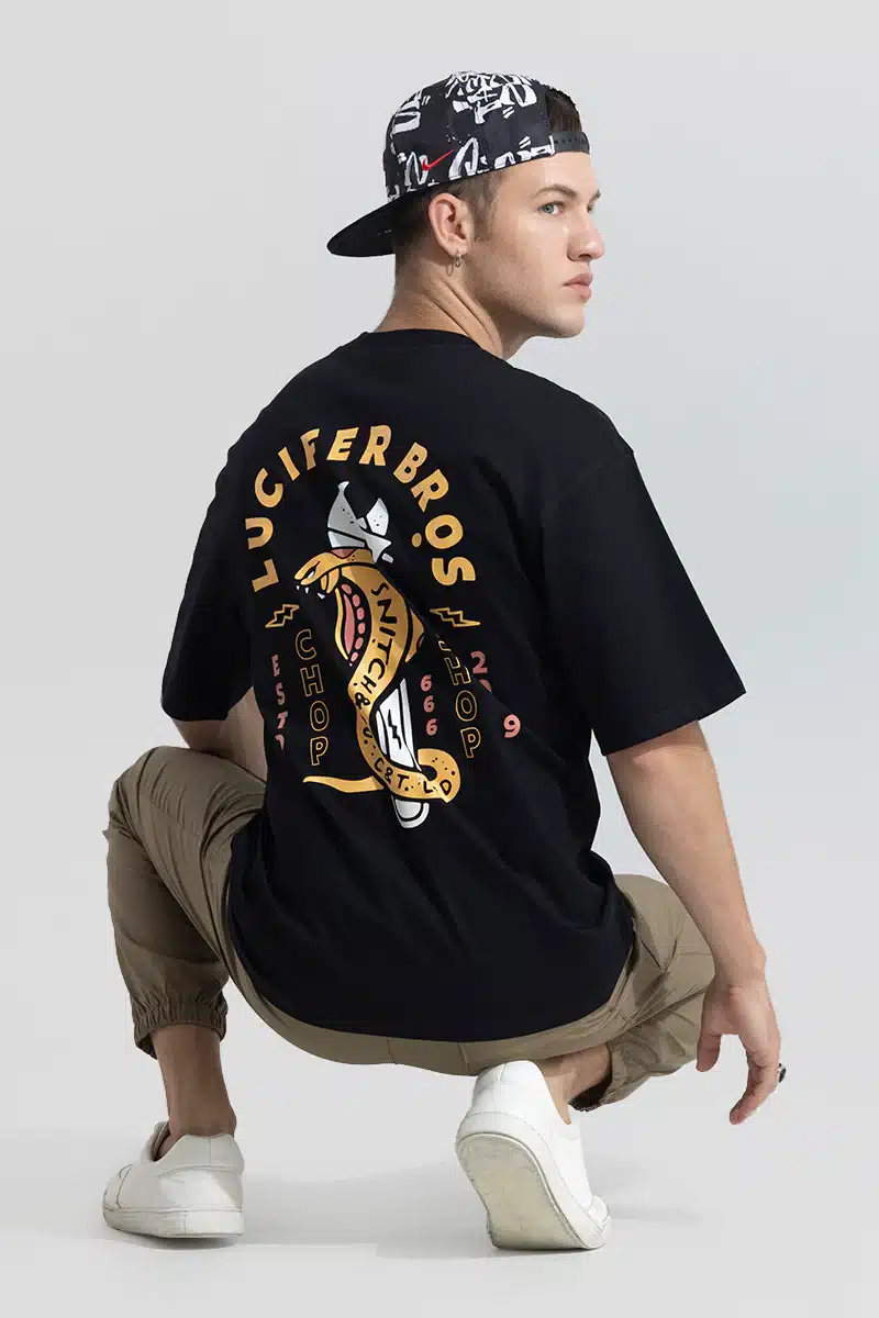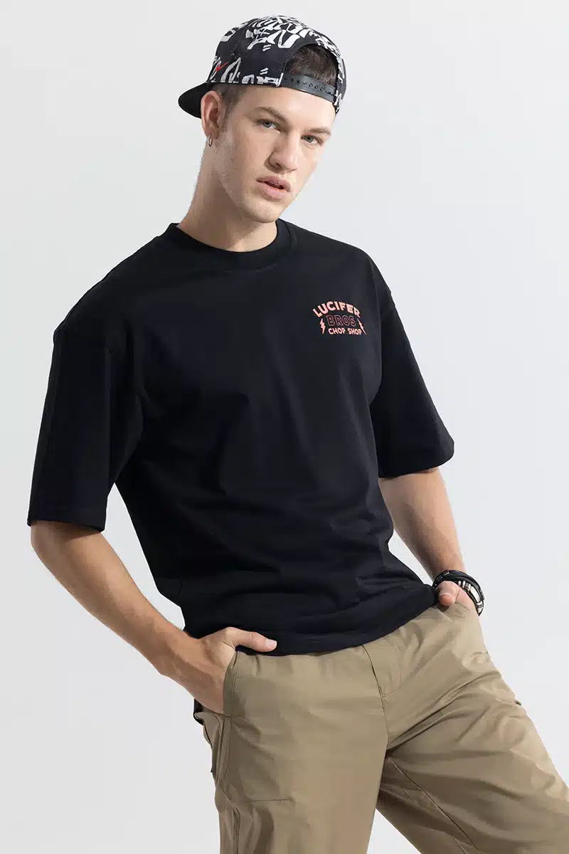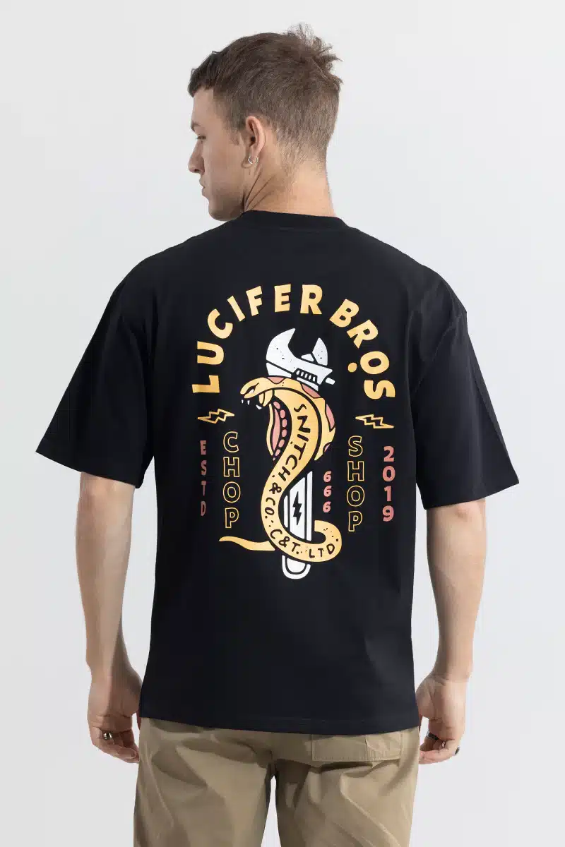 Whether you’re prowling the streets of the city or venturing into the night, the Lucifer Bros Black Oversized T-shirt is your companion in the quest for self-expression. Pair it with leather jackets or distressed denim for a look that’s as bold and daring as the dark forces that inspired it.