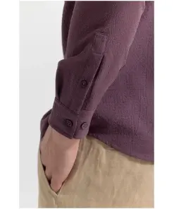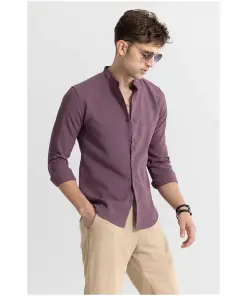 • Mandarin Neckline Mauve Shirt: Elevate your wardrobe with this mauve shirt featuring a stylish mandarin neckline.