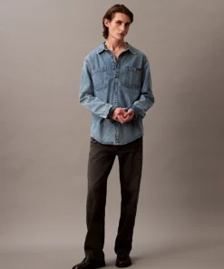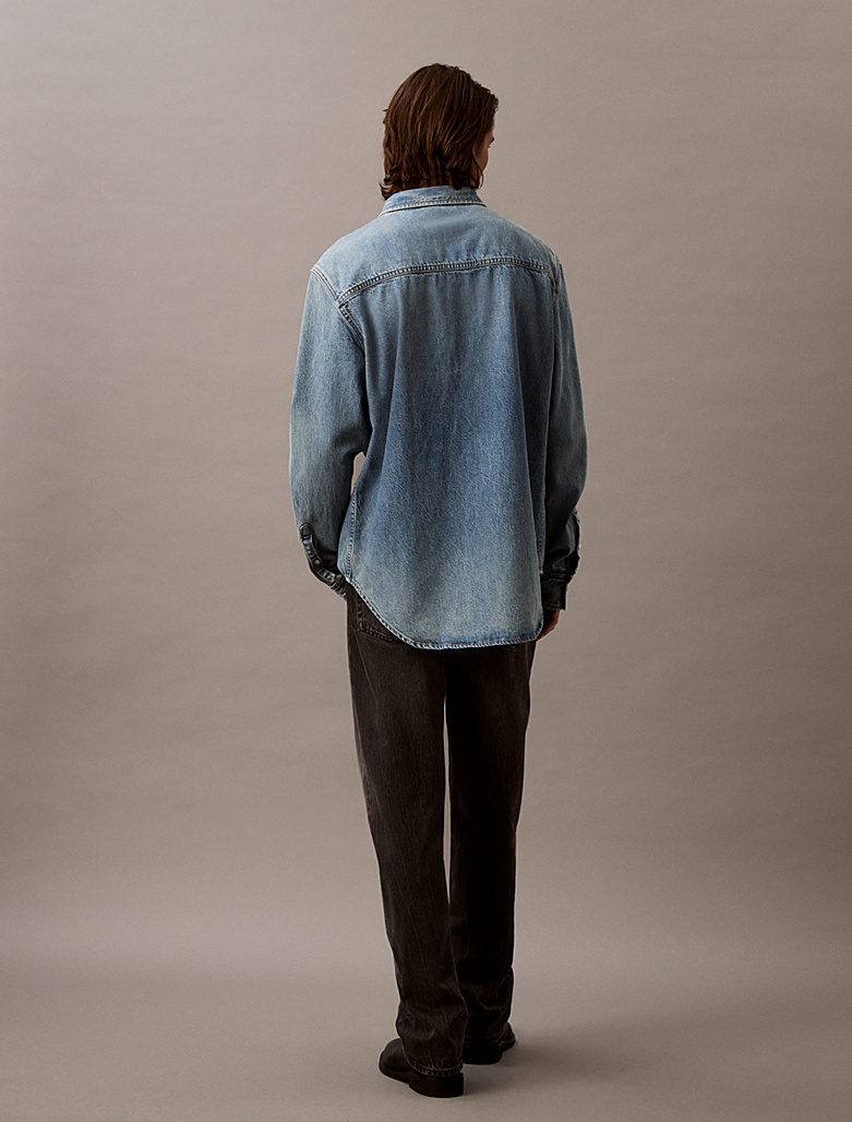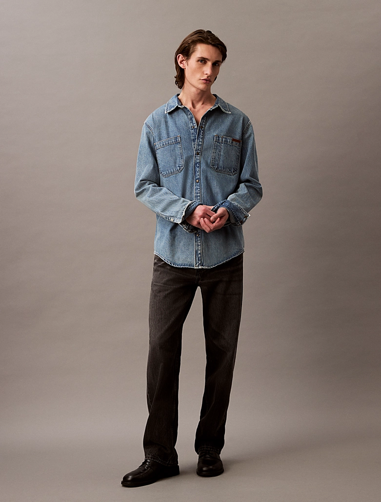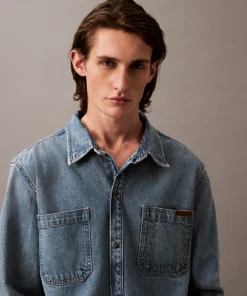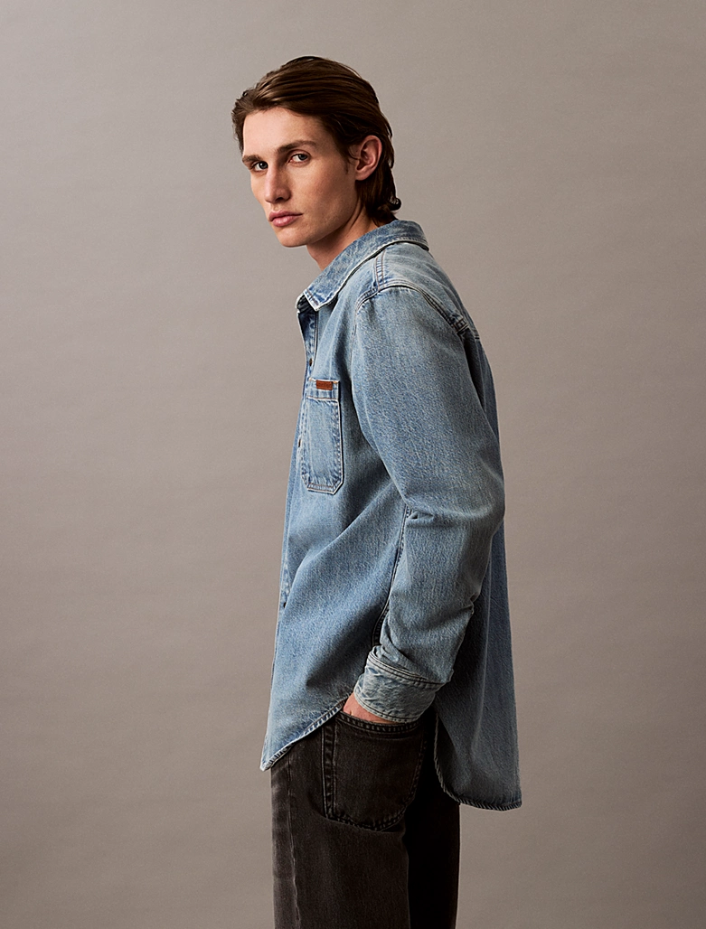 Featuring a button-down front, traditional collar, and neatly finished cuffs, the denim overshirt incorporates classic elements that enhance its overall durability and style. Reinforced stitching and attention to detail ensure that the shirt retains its shape and quality, even with frequent use.