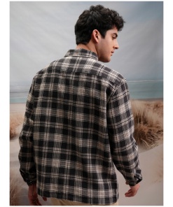 Men’s Grey Checked Oversized Fit Flannel Overshirt – a bold and distinctive addition to your wardrobe that combines comfort with contemporary style. Crafted with meticulous attention to detail, this overshirt redefines casual elegance with its oversized fit and classic checked pattern.