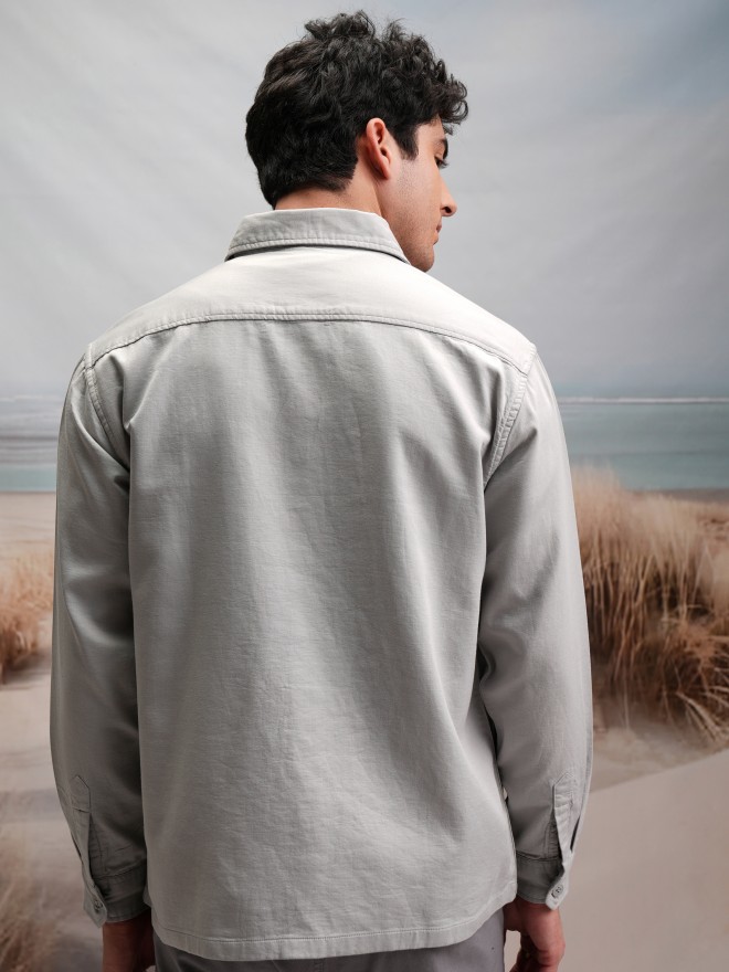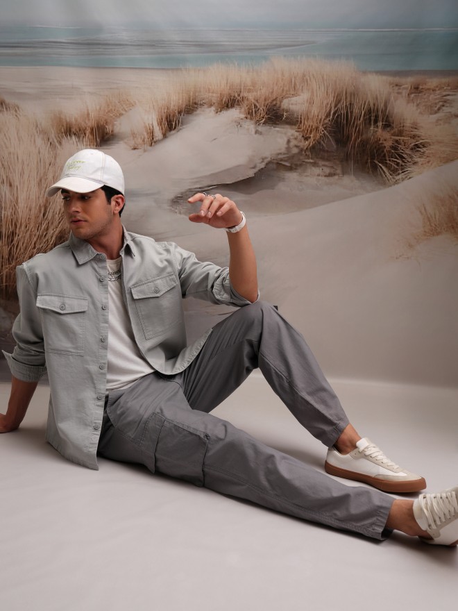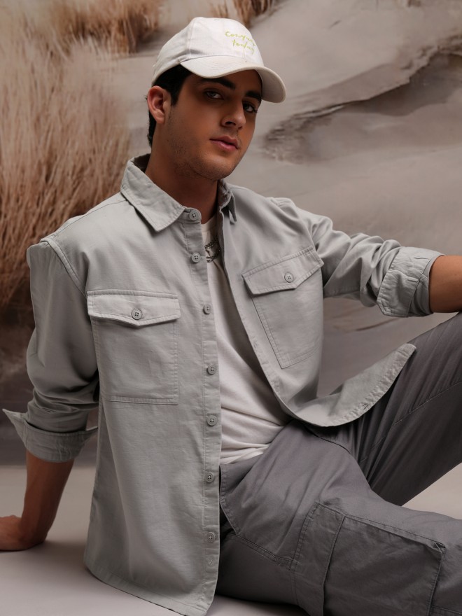 Crafted from high-quality fabric, this overshirt offers both warmth and durability, ensuring it stands the test of time. Whether you’re braving the elements on outdoor adventures or simply running errands around town, the Men’s Grey Solid Regular Fit Flannel Overshirt is your go-to option for effortless style and comfort.