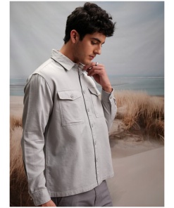 Men’s Grey Solid Regular Fit Flannel Overshirt – a versatile and timeless addition to your wardrobe that exudes rugged sophistication. Crafted with meticulous attention to detail, this overshirt combines classic design with modern comfort, making it a staple piece for any discerning gentleman.