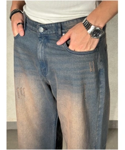 Every detail of these jeans speaks to a blend of craftsmanship and creative design. The wide-leg cut ensures maximum mobility and a flattering fall, while the mid-rise waist offers a balanced fit that’s easy to style with oversized tees, crop jackets, or relaxed hoodies. The subtle distressing and washed texture add depth and character, making each pair slightly unique. The metallic teal-bronze hue reflects light beautifully, adding dimension to the fabric and giving it an edgy, futuristic vibe — perfect for streetwear enthusiasts or anyone looking to experiment with bold fashion tones.