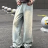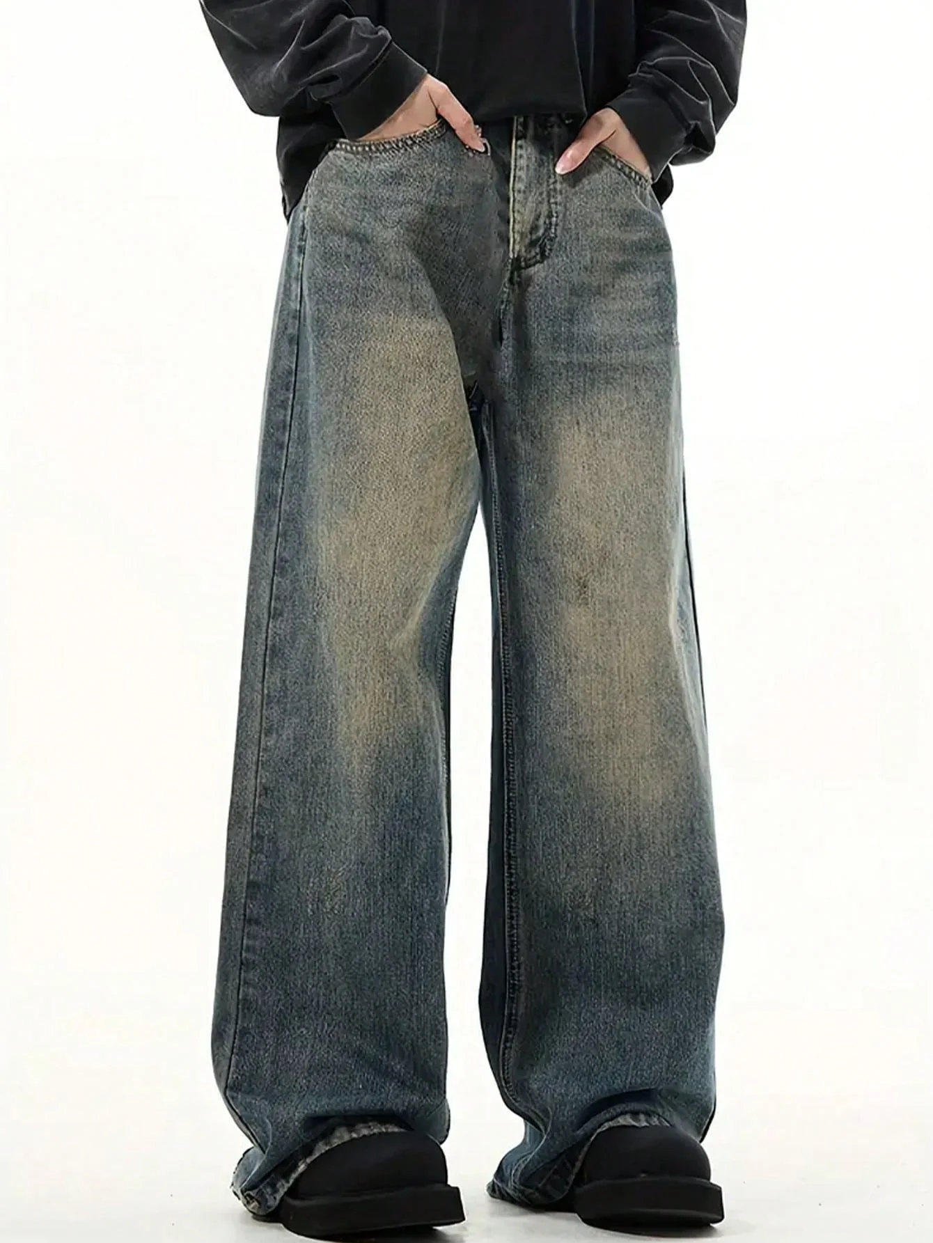 The blue screen wash creates a fresh, modern look with subtle tonal variations that enhance the depth and character of the denim. Whether paired with oversized tees and sneakers for street-style vibes or layered with hoodies and casual jackets for a relaxed ensemble, these jeans adapt effortlessly to a variety of outfits and occasions.