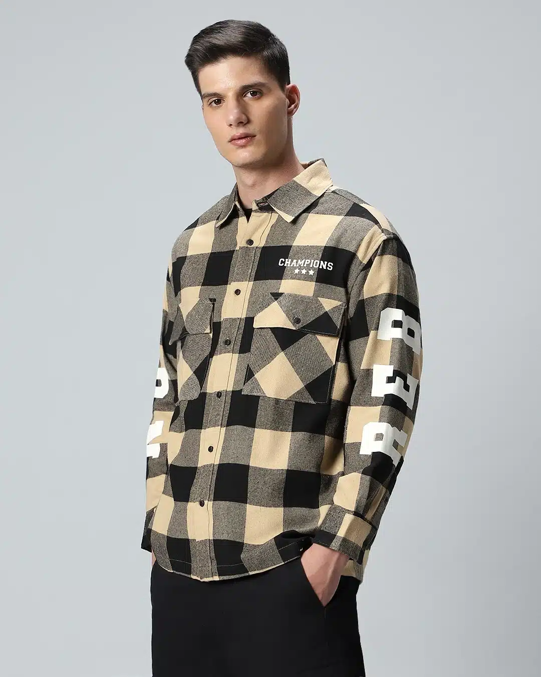 Whether you’re exploring the city streets or unwinding with friends, this shirt effortlessly elevates any ensemble. Pair it with your favorite jeans for a laid-back vibe, or layer it over a solid-colored tee for added dimension. With its unique blend of colors and oversized design, the Men’s Brown & Black Reb Checked Oversized Shirt is sure to make a lasting impression wherever you roam.